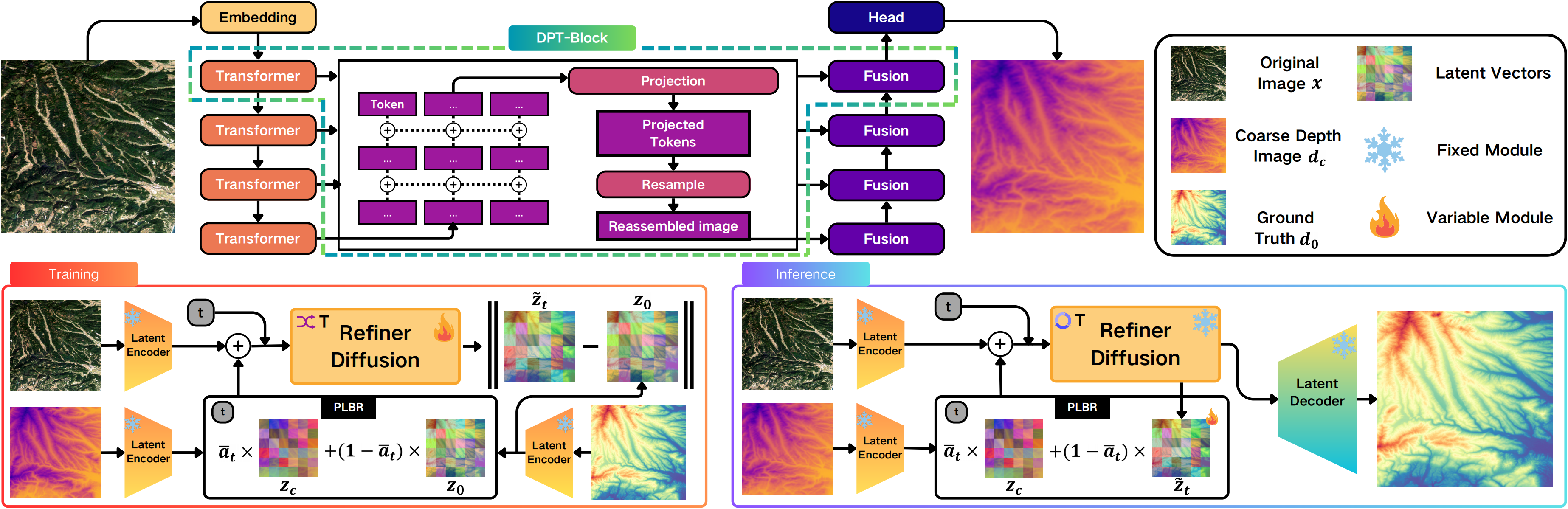 Real-time, high-fidelity monocular depth estimation from remote sensing imagery is crucial for numerous applications, yet existing methods face a stark trade-off between accuracy and efficiency. Although using Vision Transformer (ViT) backbones for dense prediction is fast, they often exhibit poor perceptual quality. Conversely, diffusion models offer high fidelity but at a prohibitive computational cost. To overcome these limitations, we propose Depth Detail Diffusion for Remote Sensing Monocular Depth Estimation (D3-RSMDE), an efficient framework designed to achieve an optimal balance between speed and quality. Our framework first leverages a ViT-based module to rapidly generate a high-quality preliminary depth map construction, which serves as a structural prior, effectively replacing the time-consuming initial structure generation stage of diffusion models. Based on this prior, we propose a Progressive Linear Blending Refinement (PLBR) strategy, which uses a lightweight U-Net to refine the details in only a few iterations. The entire refinement step operates efficiently in a compact latent space supported by a Variational Autoencoder (VAE). Extensive experiments demonstrate that -RSMDE achieves a notable 11.85% reduction in the Learned Perceptual Image Patch Similarity (LPIPS) perceptual metric over leading models like Marigold, while also achieving over a 40 speedup in inference and maintaining VRAM usage comparable to lightweight ViT models.